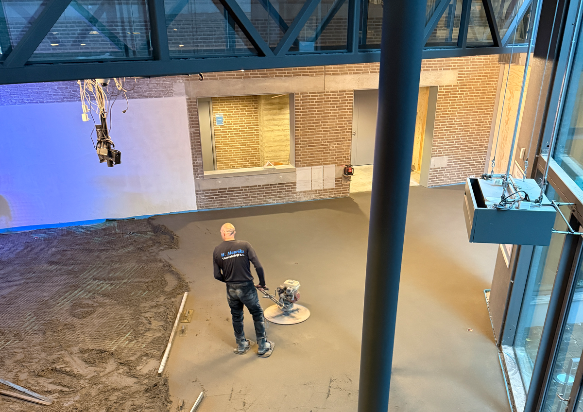 • Nieuwe cementdekvloer gestort. (let op: De afwerkvloer (troffelvloer) wordt dus deze week niet aangebracht. Dit gebeurt pas na de werkzaamheden aan de vloer in fase 3. Dit heeft te maken met de droogtijd van de cementdekvloer en het opstookprotocol van de vloerverwarming voorafgaand aan het aanbrengen van de troffelvloer. De cementdekvloer zal echter wel beloopbaar zijn, waardoor de verdere planning ongewijzigd blijft.)